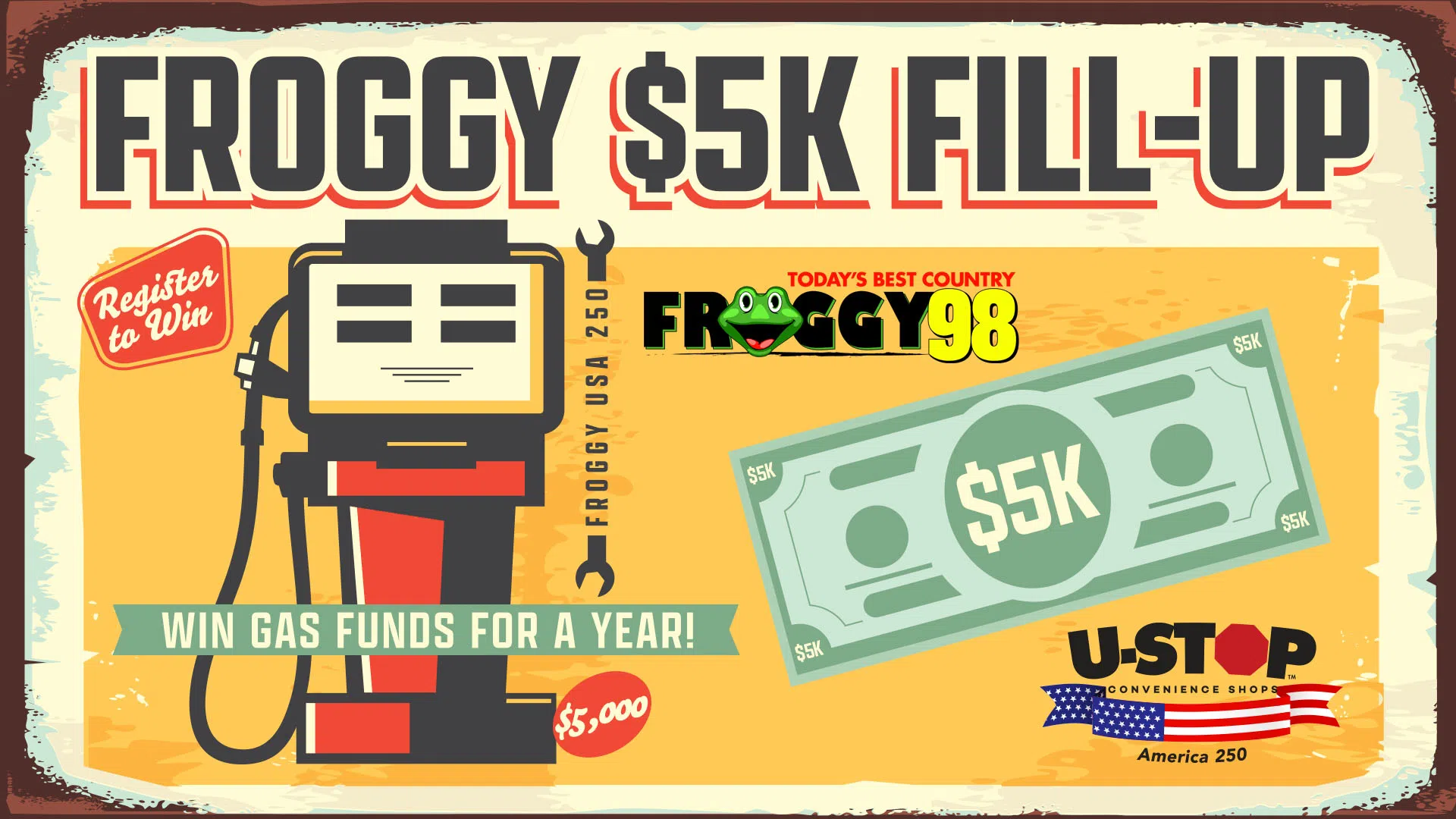 Win gas funds for a year with $5,000 cash from Froggy 98 and U-Stop Convenience Shops