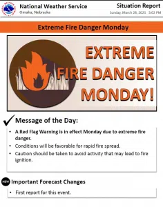 …RED FLAG WARNING IN EFFECT FROM NOON TO 9 PM CDT MONDAY FOR WIND AND LOW RELATIVE HUMIDITY FOR EASTERN NEBRASKA AND SOUTHWEST IOWA… The National Weather Service in Omaha/Valley has issued...