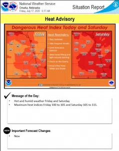 Today and Saturday are good days to enjoy the air conditioning. The National Weather Service issued a heat advisory. Heat indices will reach or exceed 105 along the Nebraska-South Dakota border on Fri...
