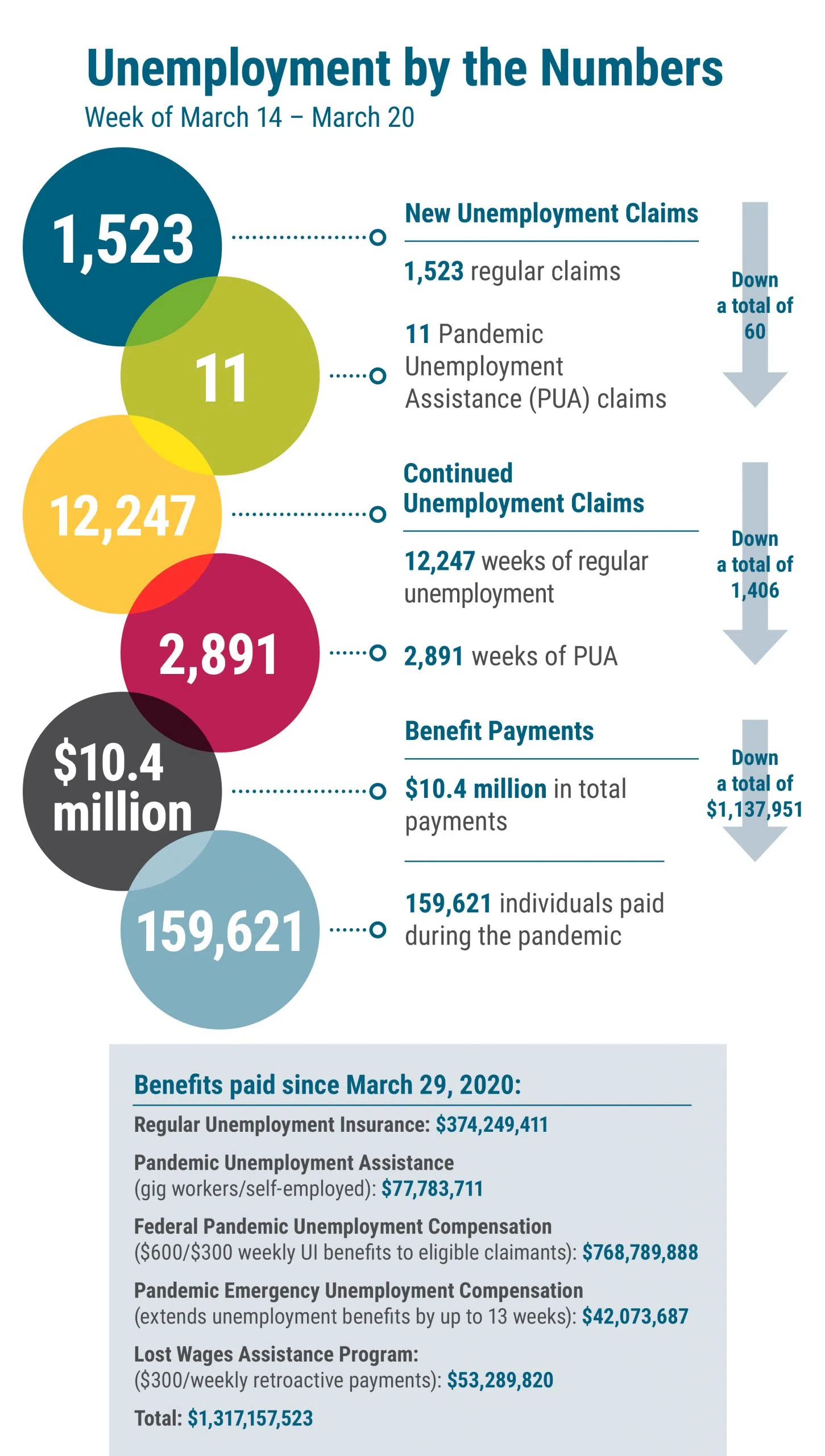 he Nebraska Department of Labor has released unemployment claim statistics for the week of March 14 – March 20. New unemployment claims dropped by 20 compared to the week ending March 13th and n...