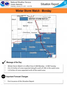 ..WINTER WEATHER ADVISORY REMAINS IN EFFECT UNTIL 3 AM CST SUNDAY… …WINTER STORM WATCH IN EFFECT FROM MONDAY MORNING THROUGH LATE MONDAY NIGHT… The following counties and cities are ...