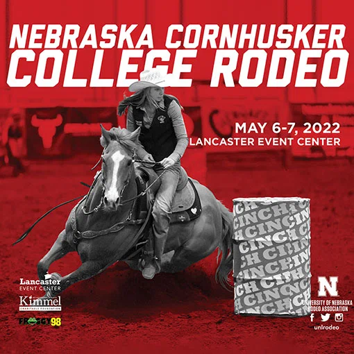 Come and cheer on your University of Nebraska Rodeo Team as they welcome college rodeo athletes from across the Great Plains Region during the 63rd Annual Nebraska Cornhusker Rodeo. Contestants from Nebraska, South Dakota, North Dakota, Iowa, Wisconsin and Minnesota will compete for their chance to represent the Great Plains Region at the College National Finals Rodeo in Casper, Wyoming.